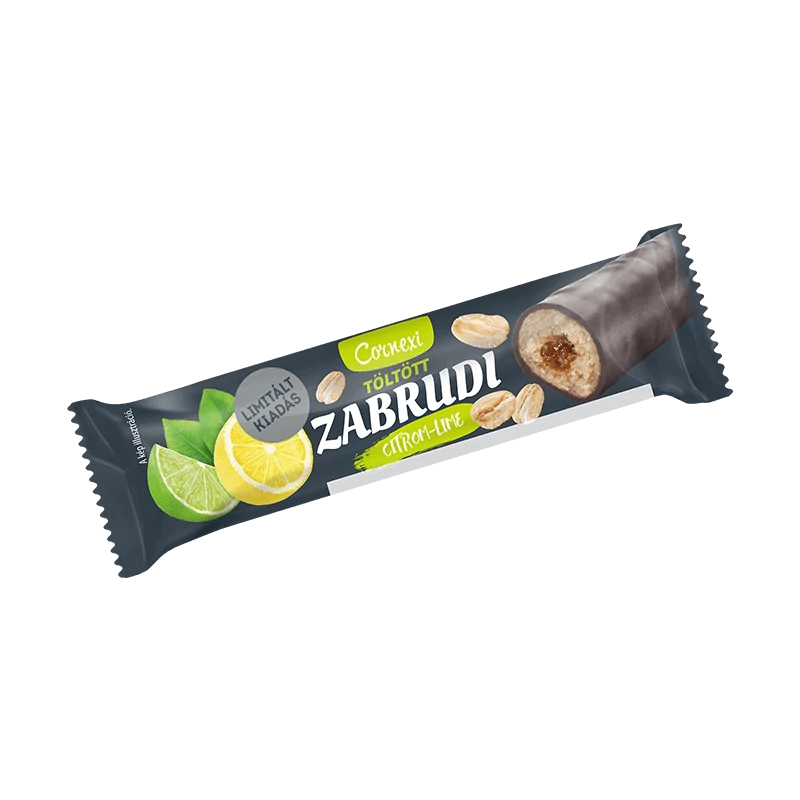 - zabpehely 34%, kakaós bevonómassza 17% [cukor, részben hidrogénezett növényi zsír (pálmamag), zsírszegény kakaópor 15%, emulgeálószerek: lecitinek és poliglicerin-poliricinoleát; aroma], citromos - lime-os töltelék 14% [fruktóz-glükózszörp, cukor, sűrített citromlé 15%, sűrítményből készült lime-lé 10%, zselésítőanyag: pektinek; aromák, étkezési sav: citromsav; tartósítószer: kálium-szorbát; citrom- és sáfrány sűrítmény], glükózszirup, fruktóz-glükózszörp, növényi zsír (pálma), zabpehelyliszt, nedvesítőszer: glicerin; maltodextrin, emulgeálószer: lecitinek (szója); aromák, étkezési só, étkezési sav: citromsav; tartósítószer: kálium-szorbát. Küllem: henger alakú, töltött zabszelet, teljesen bevont.