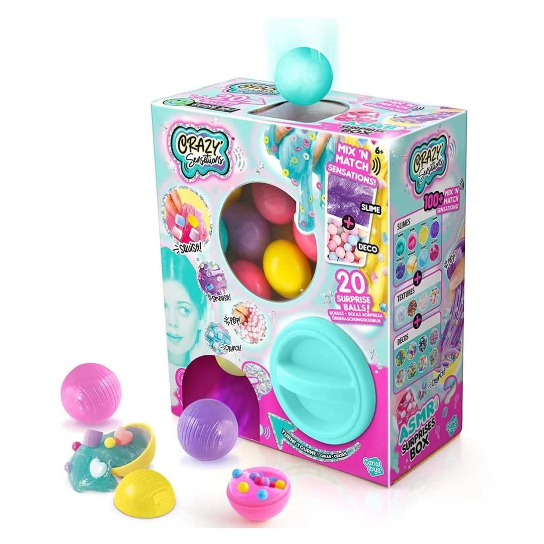 A Crazy Sensations ASMR Meglepetés Doboz a kreativitás, a játékosság és az érzékszervi élmények tökéletes kombinációja, amiért a gyerekek (és titokban a felnőttek is) rajonganak! Ez a doboz 20 darab színes meglepetésgolyót rejt, amelyek mindegyike valamilyen különleges szenzoros élményt nyújt. Találhattok benne ragacsos, habos, zselés, pattogó, gyöngyös és texturált slime-okat, amiket kedvetek szerint keverhettek, nyomkodhattok, formázhattok.