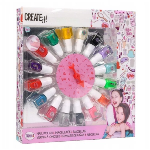 Kislányod szeretné kipróbálni magát a körömfestésben? Lepd meg őt ezzel a szuper körömlakk szettel, melyben 16 db körömlakk található meg. Mindegyik különböző élénk színt kapott, a doboz pedig egy rulett asztalként működik, hiszen középen kapott egy nyilat, amit megpörgetve segíthet kitalálni, melyik szín kerüljön fel elsőként. Szerezd be számára és keresd a kollekicó sminkszettjét is kínálatunkban, és kezdődhet is a szépítkezés.