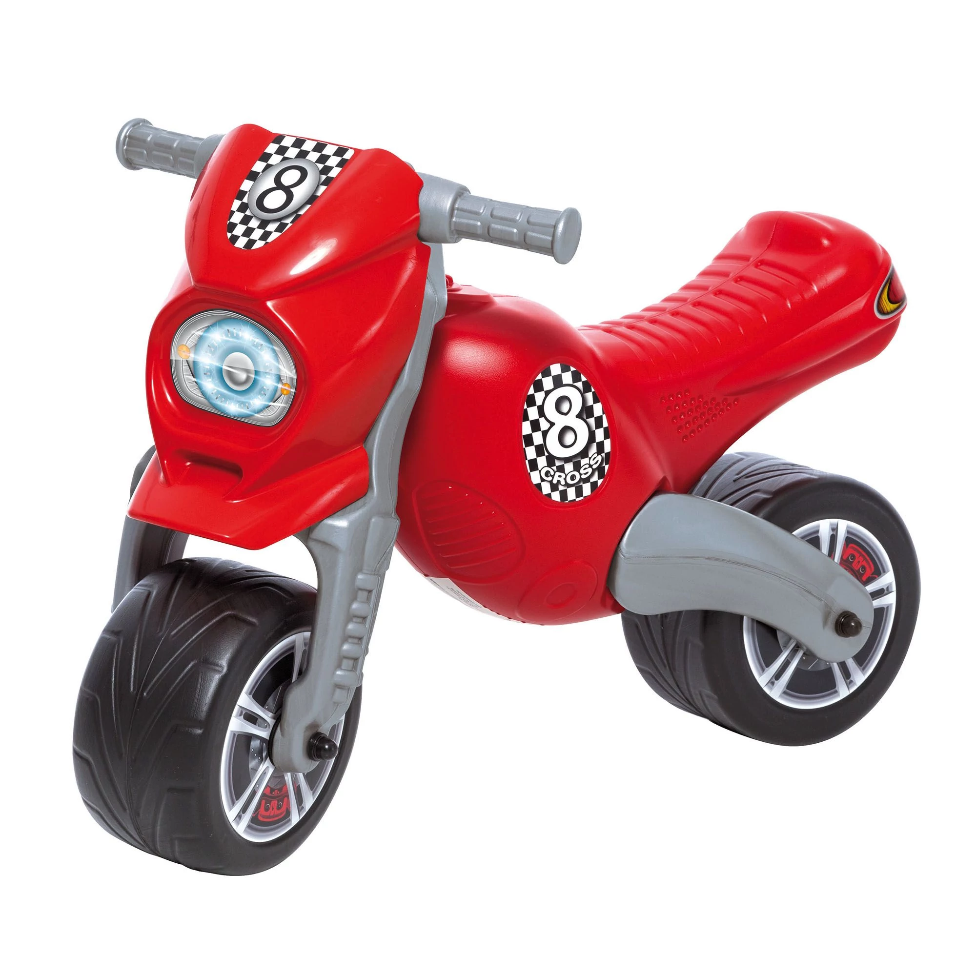 Pattanj fel a szuper Cross motorra, melynek még rajtszáma is van! A vastag kerekekkel rendelkező műanyag Cross motor a gyerekeknek stabilabb haladást biztosít, melynek köszönhetően nehezebben dőlnek majd oldalra a kicsik használat közben. A nagy méretű motorral egyszerű a száguldás, a nyeregbe ülve lábbal hajthatják magukat a gyorsabb sebesség érdekében. Ragadd meg a kormányt és máris indulhat a száguldás a 8-as rajtszámú Cross motorral!