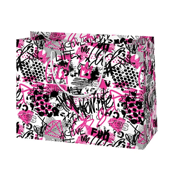 Csajos Graffiti mintás közepes méretű ajándéktáska 18x22,7x10cm