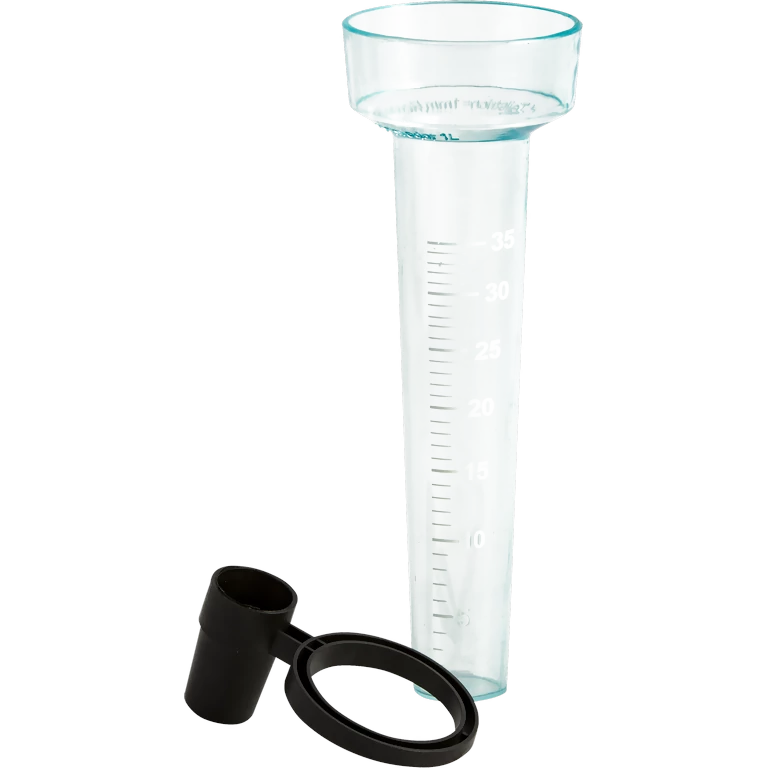 A műanyag csapadékmérő edény segítségével pontosan nyomon tudjuk követni a lehullott csapadék mennyiségét.