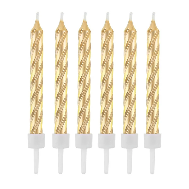 Születésnapi bulira készülsz? Az ünnepelt egészen biztosan kedvelni fogja ezeket a különleges gyertyákat, melyek nem csak csavart formájukkal, de arany festésükkel is látványosak lesznek. Szúrj a torta tetejére pontosan annyi gyertyát ahányadik szülinapot ünneplitek, ebben a hegyes gyertyatalp lesz segítségedre. Legyen mutatós és stílusos a szülinapi ünnepség a látványos kiegészítővel!
