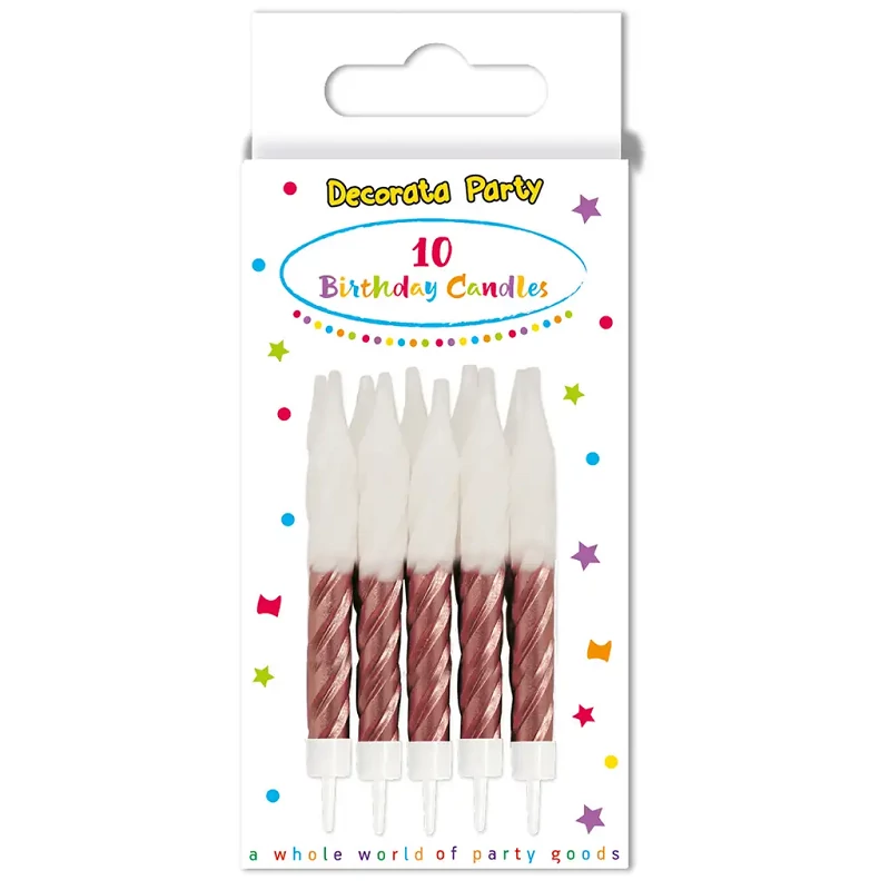 Varázsolj stílusos ünnepi hangulatot a szülinapi tortára ezzel a 10 darabos csavart születésnapi gyertya szettel! A klasszikus spirál formájú gyertyák elegáns megjelenést kölcsönöznek a tortának, miközben a praktikus talpaknak köszönhetően könnyen és biztonságosan rögzíthetők a sütemény tetejére.