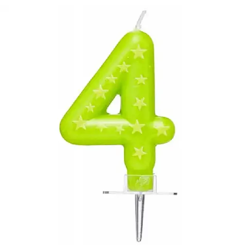 Egy igazán színes kiegészítővel teheted még látványosabbá a születésnapi zsúr fénypontját, az ünnepi tortát! A gyerekeknek is biztosan elnyeri majd a tetszését a viasz számgyertya, mely zöld alapszínű és sárga csillagokkal díszített. Használd a 4. vagy épp a 14. szülinap alkalmával is, a gyerekek biztosan kedvelni fogják azt élénk színei miatt!