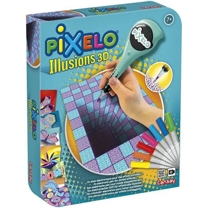 A Pixelo készletekkel már önmagában különleges alkotásokat készíthetnek a gyerekek, de az Illuzió 3D-vel gyönyörű és színes rajzok szülthetnek pillanatok alatt. Ehhez szükségük lesz a Pixelo tollra és egy kiválasztott képre. Az elektronikus tollal pontozott mintákat készíthetnek, így szinte életre kelthetik az alkotást. A kiválasztott színes filctollat bele kell helyezni a pontozóba, ami automatikusan elkészíti a képet. A gyerekek többféle illúziót is elkészíthetnek a csomagnak köszönhetően. A színes rajzok bekeretezhetőek és dekorálható velük a gyerekszoba - de akár ajándéknak is nagyszerű. A játék nem csak remek kikapcsolódás és kreatív tevékenység, hanem kiválóan fejleszti a kézügyességet és a türelmet.