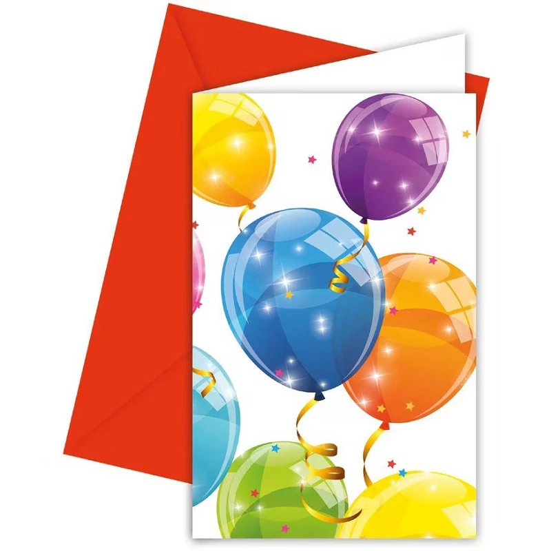 Szuper születésnapi bulit készíthetsz elő ezekkel a stílusos meghívókkal, melyeken rengeteg színes lufi díszeleg! A szülinapi meghívókat Te magad címezheted meg a legjobb barátaidnak, akiket értesíthetsz az időpontról és a helyszínről a meghívó segítségével. A piros borítékba helyezett színpompás meghívókat ezután átadhatod vagy elküldheted a legjobb barátaidnak, akiket szívesen látsz a bulin.