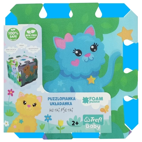 A szivacs puzzle-ök, más néven habtapik rendkívül népszerűek főként a kisgyermekes anyukák körében, ugyanis igen sokszínűen használhatóak. A jókora puzzle elemek kellően puhák ahhoz, hogy járólapot készítsünk belőle a járni tanuló kisgyerekeknek, valamint falvédőként is használhatjuk. Az puzzle alkotórészei akár 3 dimenzióban kockaként is összerakhatóak. Ez a tündéri 8db-os szett kedves kis cicákat ábrázol, mely biztosan elnyeri majd a gyerekek tetszését. Az élénk színű puzzle-ük játékra sarkallják a kicsiket és a puzzle segítségével fejleszthetik gondolkodásukat, térlátásukat és kézügyességüket is. Használata két éves kortól ajánlott.