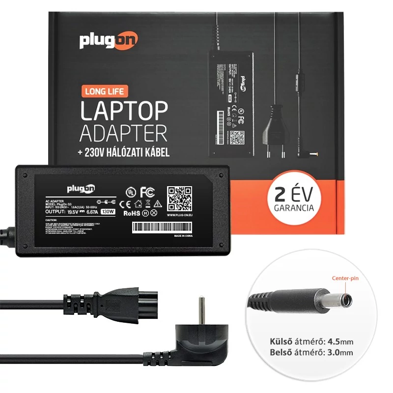 Dell 19.5V 6.67A (130W) 4.5x3.0mm töltő