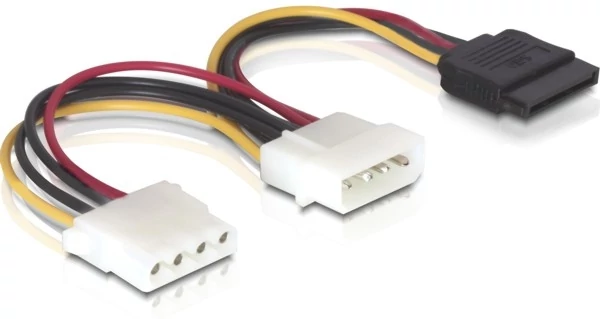 Delock 15 tűs SATA HDD 2 db 4 tűs Molex (apa/anya) hálózati kábel, 16,5 cm