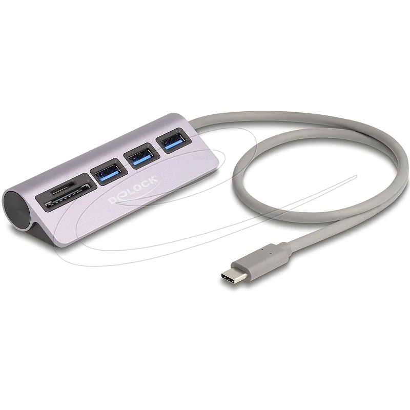 Delock 3 portos USB 5 Gbps hub beépített SD és Micro SD kártyaolvasóval, valamint USB Type-C csatlakoztatóval
