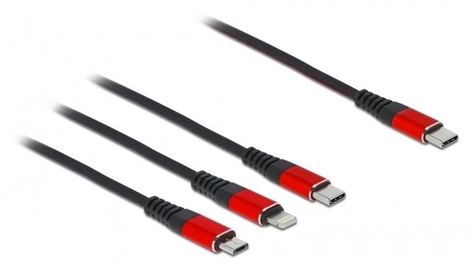 Delock 30 cm hosszú, USB töltő kábel 3 az 1 USB Type-C apa Lightning-, Micro USB- és USB Type-C c