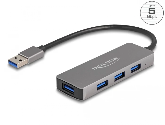 Delock 4 portos USB 3.2 Gen 1 hub USB Type-A csatlakozóval USB Type-A portok az oldalán