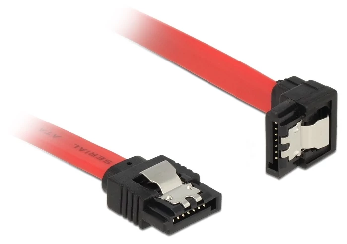 Ez a Delock SATA-kábel különféle SATA-eszközök, például merevlemezek, vezérlőkártyák vagy Flash-memóriák belső csatlakoztatását teszi lehetővé. A kábel megfelel a legújabb szabvány előírásainak, és akár 6 Gb/s adatátviteli sebességet biztosít. Visszafelé kompatibilis a korábbi SATA-verziókkal, azonban kizárólag az adott átviteli sebességet teszi lehetővé. Ha a kábelt egy merevlemezhez csatlakoztatja, a kábelt lefelé tudja elvezetni. A csatlakozókon lévő fémkapcsoknak köszönhetően a kábel megbízhatóan rögzíthető.