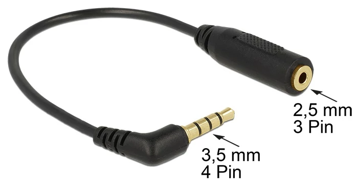 Delock Audio Cable Stereo jack 3.5 mm 4 pin male > Stereo jack 2.5 mm 3 pin female angled
