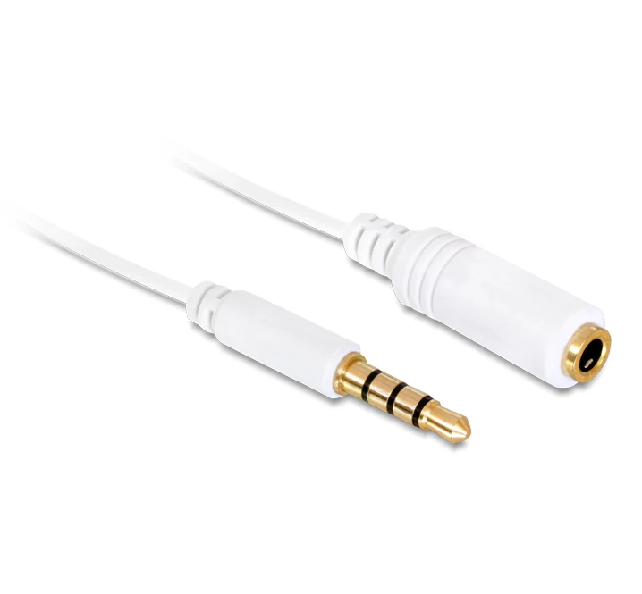 Delock audió toldó kábel, 4 pol.3.5mm sztereó jack dugó/aljzat csatlakozókkal, Iphonehoz, fehér