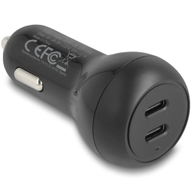 Ez a Delock USB autós töltő két USB-eszköz töltésére használható. A portok USB Type-C Power Delivery-vel (PD) vannak felszerelve, így a támogatott eszközök akár 40 watttal is tölthetők.