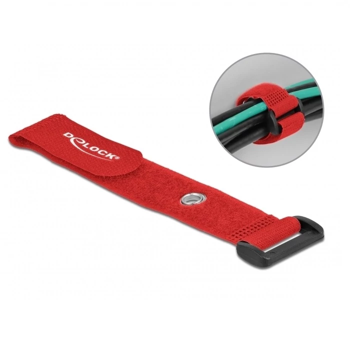 Delock Befűzős kábelkötegelő tépőzárral és szorító karikával hossza 190 mm, szélessége 25 mm, 5 db.