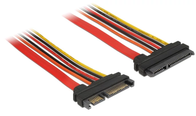 Ez a Delock SATA-bővítőkábel lehetővé teszi egy SATA-adat- és hálózati csatoló kibővítését, és olyan különféle eszközök csatlakoztatására használható, amelyek 22 tűs SATA-csatlakozóval rendelkeznek.