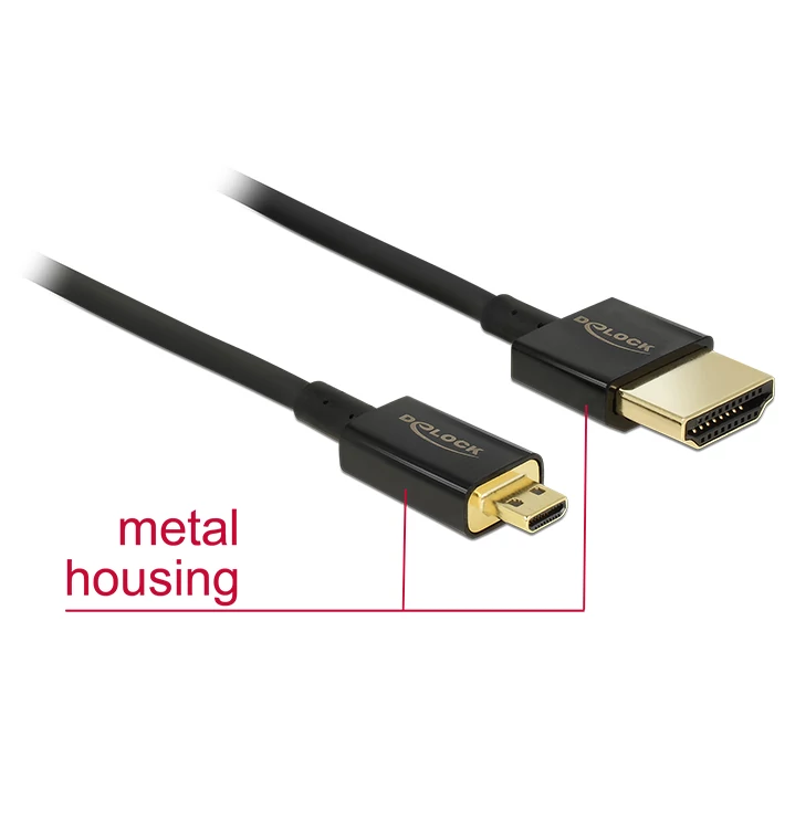 Delock Cable High Speed HDMI with Ethernet - HDMI-A male > HDMI Micro-D male 3D 4K 2 m Slim Premium