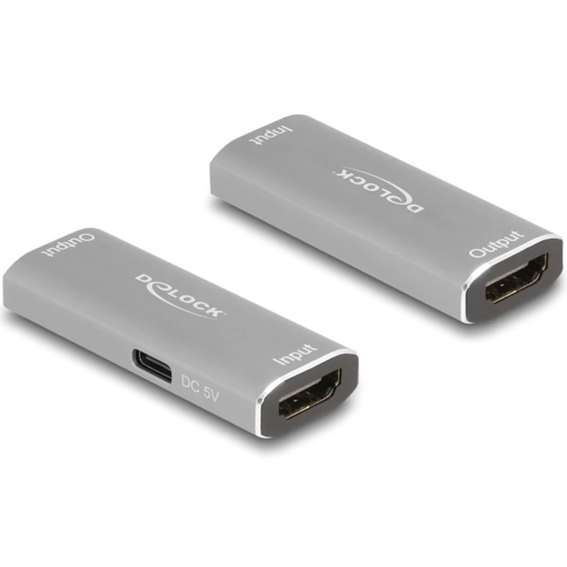 Ez a Delock HDMI-ismétlő a HDMI-csatlakozás jelének erősítésére használható 20 méterig. Egy maximum 15 méter hosszú kábel csatlakoztatható egy asztali vagy hordozható számítógép és az ismétlő bemeneti portja között, a másik oldalon pedig egy maximum 5 méter hosszú kábel az ismétlő kimeneti portjába, amely ezután egy kijelzőhöz vagy televízióhoz csatlakoztatható. Az ismétlő legfeljebb az 8K Ultra HD (8K @ 60 Hz) felbontást támogatja, és visszamenőleg kompatibilis a Full-HD 1080p szabvánnyal.
