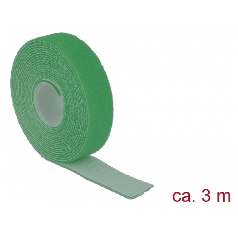 Delock Hurkolható rögzítők, 3 m x 20 mm (H x Sz) tekercs, zöld