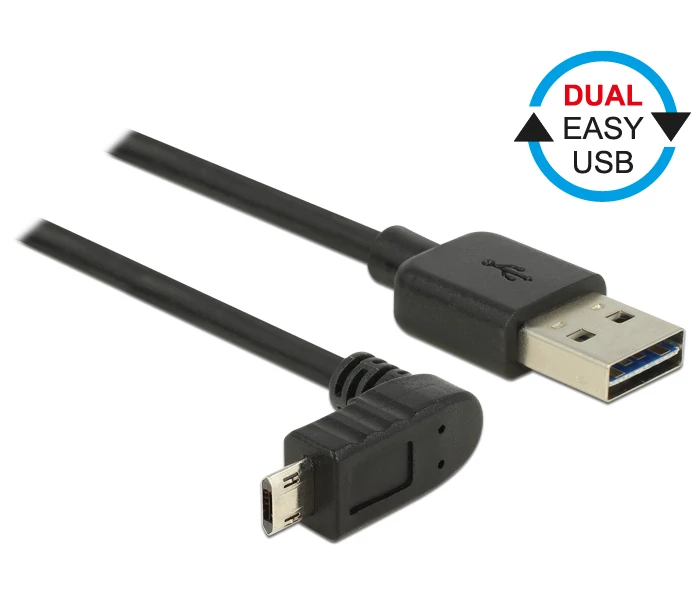 Delock Kábel, EASY-USB 2.0-s A-típusú csat. > EASY-USB 2.0-s Micro-B típusú csat.ívelt 0,5 m, fekete