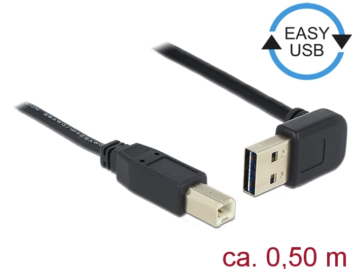Delock Kábel EASY-USB 2.0-s A típusú csatlakozódugó, ívelt felfelé / lefelé > USB 2.0-s B-típusú csa