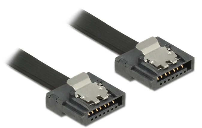 A Delock SATA FLEXI kábeleit kifejezetten a ház szűk helyein történő alkalmazásra tervezték. Ezek a kábelek rendkívül rugalmasak és kívánság szerint hajlíthatók, akár csomóba is köthetők. További előnyt jelent az extrém szilárdság, ami megakadályozza a szakadást és megelőzi az anyaghibát a kábelekben. A SATA FLEXI kábelek használatával nincs többé szükség derékszögű csatlakozók használatára, mivel a csatlakozókat könnyedén bármilyen szögbe hajlíthatja. A rövid csatlakozók nagyobb rugalmasságot tesznek lehetővé a szoros helyeken, használatuk kézenfekvő és a fémkapcsok a helyükre rögzítik a kábeleket. A kábelek támogatják az akár 6 Gb/s adatátviteli sebességet és visszamenőleg kompatibilisek a korábbi SATA verziókkal.
