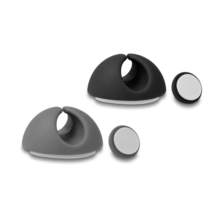 Ez a Delock kábeltartó készlet lehetővé teszi a szabadon álló kábelek egyértelmű és rendezett válogatását. Öntapadó, és könnyen hozzáilleszthető bármely sima felülethez, például asztalhoz vagy falhoz, és nyom nélkül távolítható el. A kicsi, kör alakú kialakításával a kábeltartó bármilyen helyiségbe észrevétlenül illeszkedik. Műszaki adatok Öntapadós Mennyiség: 6 darab / politasak 3 x fekete 3 x szürke Anyaga: TPR Magasság: kb. 15 mm Átmérő: kb. 29 mm Maximum 6,5 mm átmérőjű kábelhez A csomag tartalma 6 x kábel tartó Csomag Zárható műanyag tasak