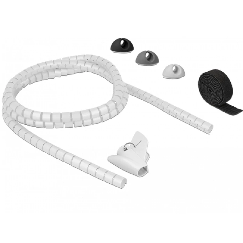 Ez a Delock kábelrendező készlet tökéletes a szabadon lévő kábelek rendszerezett, védett és tiszta kezelésére például az irodában vagy otthon. Tartalmaz három kábeltartót, egy spirál tömlőt és egy Velcro szalagot.