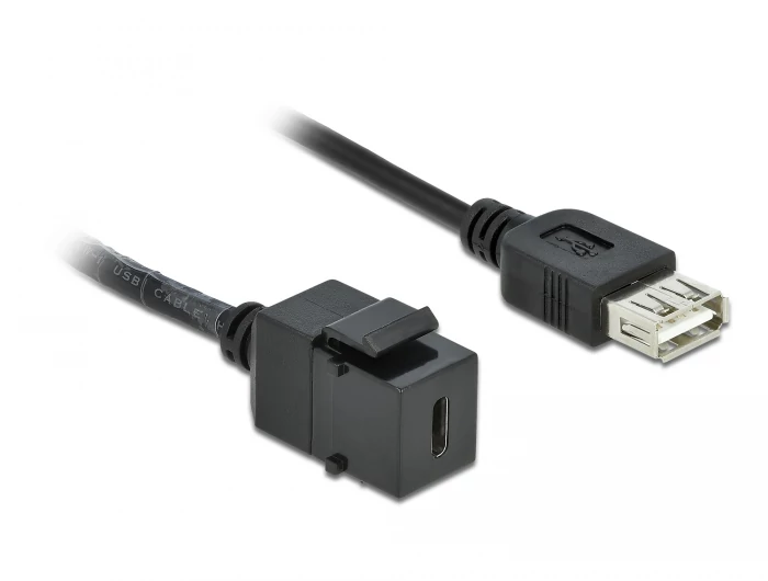 Delock Keystone modul, USB 2.0 C-csatlakozóhüvely > USB 2.0 A-csatlakozóhüvely, kábellel