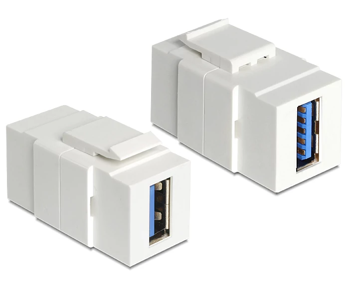 Ezzel a Delock modullal bővíthető pl. egy USB kábelt. Szabványos méreteivel könnyen bepattintható szereléshez használható pl. egy Keystone patch panel, előlap vagy felületre szerelhető doboz.