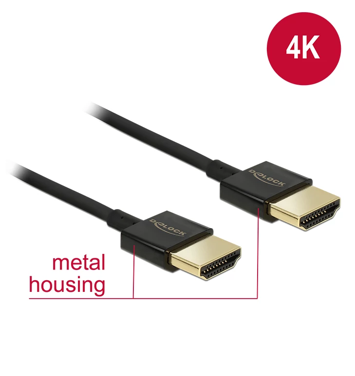Delock nagy sebességű HDMI kábel Ethernethez - HDMI-A apa > HDMI-A apa 3D 4K 2 m Slim Premium