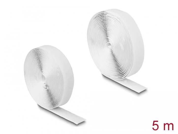 Delock Öntapadó tépőzáras szalag-szett, H 5 m és Sz 20 mm fehér