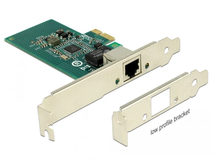 A Delock PCI Express-kártya egy hálózati portot biztosít max. 1000 Mbps adatátviteli sebességgel.