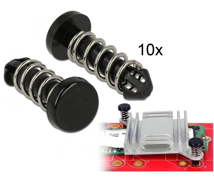 Ez a Delock rúgós, hűtő borda rögzítő szegecskészlet használható a hűtő borda nyomtatott áramköri laphoz rögzítésére.