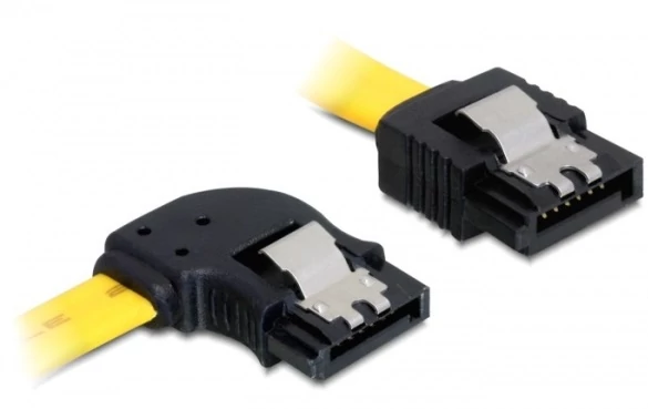 Ez a Delock SATA-kábel különféle SATA-eszközök, például merevlemezek, vezérlőkártyák vagy Flash-memóriák belső csatlakoztatását teszi lehetővé. A kábel megfelel a legújabb szabvány előírásainak, és akár 6 Gb/s adatátviteli sebességet biztosít. Visszafelé kompatibilis a korábbi SATA-verziókkal, azonban kizárólag az adott átviteli sebességet teszi lehetővé. Ha a kábelt egy merevlemezhez csatlakoztatja, a kábelt balra tudja elvezetni. A csatlakozókon lévő fémkapcsoknak köszönhetően a kábel megbízhatóan rögzíthető.