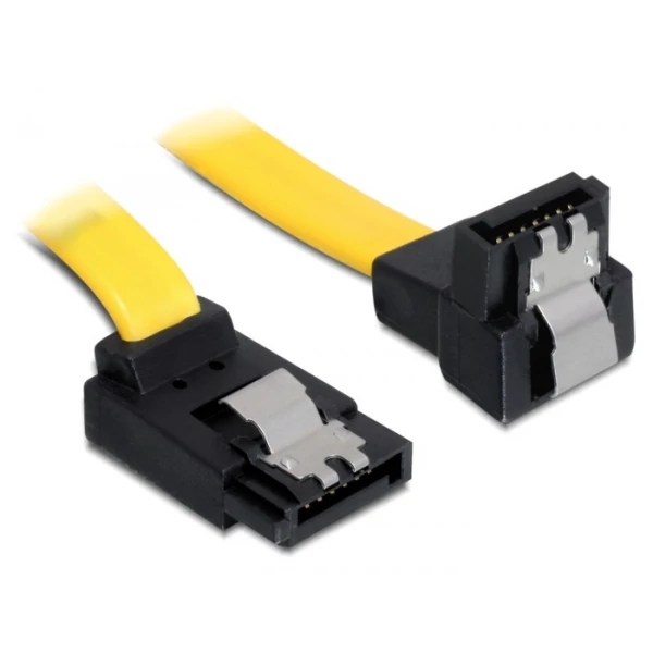 Ez a Delock SATA-kábel különféle SATA-eszközök, például merevlemezek, vezérlőkártyák vagy Flash-memóriák belső csatlakoztatását teszi lehetővé. A kábel megfelel a legújabb szabvány előírásainak, és akár 6 Gb/s adatátviteli sebességet biztosít. Visszafelé kompatibilis a korábbi SATA-verziókkal, azonban kizárólag az adott átviteli sebességet teszi lehetővé. A csatlakozókon lévő fémkapcsoknak köszönhetően a kábel megbízhatóan rögzíthető.
