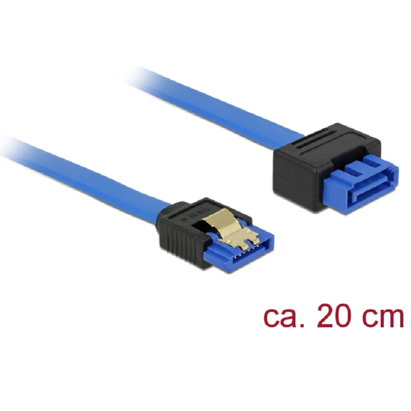 Delock SATA-bovítokábel, 6 Gb/s, hüvely, egyenes > SATA dugó, egyenes, 20 cm, kék, reteszes típusú