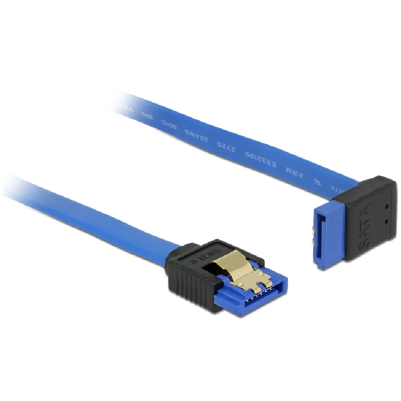 Delock SATA-kábel, 6 Gb/s, hüvely, egyenes > SATA hüvely, felfelé ívelt, 20 cm, kék aranyszínu kapcs