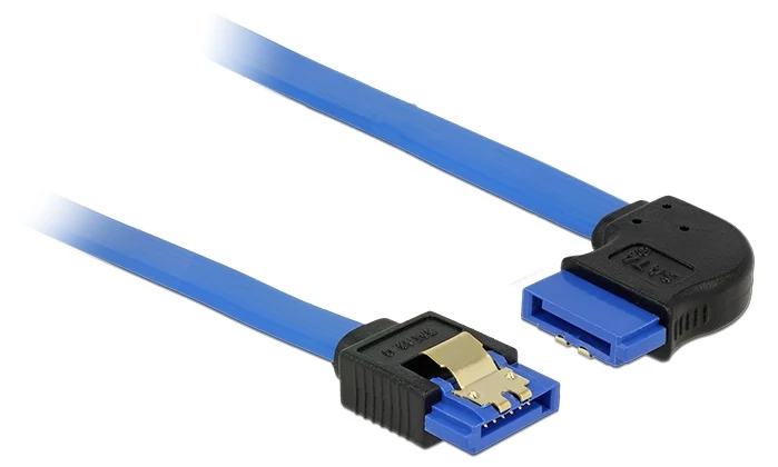 Ez a Delock SATA-kábel különféle SATA-eszközök, például merevlemezek, vezérlőkártyák vagy Flash-memóriák belső csatlakoztatását teszi lehetővé. A kábel megfelel a legújabb szabvány előírásainak, és akár 6 Gb/s adatátviteli sebességet biztosít. Visszafelé kompatibilis a korábbi SATA-verziókkal, azonban kizárólag az adott átviteli sebességet teszi lehetővé. Ha a kábelt egy merevlemezhez csatlakoztatja, a kábelt jobbra tudja elvezetni. A csatlakozókon lévő fémkapcsoknak köszönhetően a kábel megbízhatóan rögzíthető.