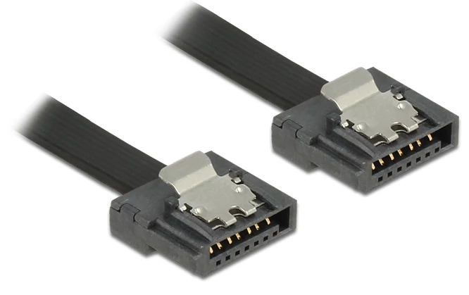 A Delock SATA FLEXI kábeleit kifejezetten a ház szűk helyein történő alkalmazásra tervezték. Ezek a kábelek rendkívül rugalmasak és kívánság szerint hajlíthatók, akár csomóba is köthetők. További előnyt jelent az extrém szilárdság, ami megakadályozza a szakadást és megelőzi az anyaghibát a kábelekben. A SATA FLEXI kábelek használatával nincs többé szükség derékszögű csatlakozók használatára, mivel a csatlakozókat könnyedén bármilyen szögbe hajlíthatja. A rövid csatlakozók nagyobb rugalmasságot tesznek lehetővé a szoros helyeken, használatuk kézenfekvő és a fémkapcsok a helyükre rögzítik a kábeleket. A kábelek támogatják az akár 6 Gb/s adatátviteli sebességet és visszamenőleg kompatibilisek a korábbi SATA verziókkal.
