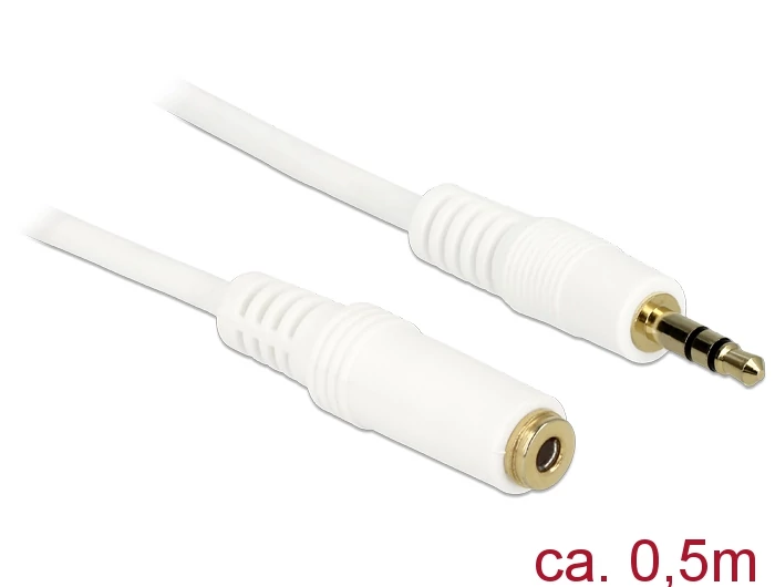 Delock Stereo Jack hosszabbító kábel 3.5 mm 3 pin apa > anya 0.5 m fehét