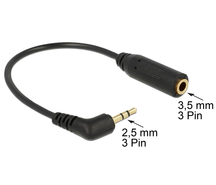 Delock Sztereo audi kábel jack 2.5 mm 3 tűs apa > Sztereo jack 3.5 mm 3 tűs anya, szögletes