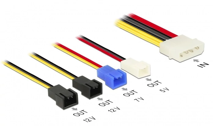 Ez a Delock kábel képes egyszerre akár 4 ventilátort is árammal ellátni egy szabad 4-tűs Molex csatolófelületen keresztül.