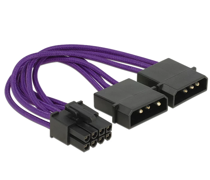 Delock tápkábel PCI Express 8 tűs apa > 2 x 4 tűs apa textil árnyékolás lila