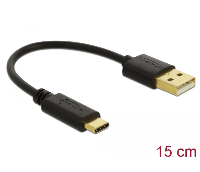 Delock Töltő kábel USB A-típusú - USB Type-C csatlakozó végekkel 15 cm