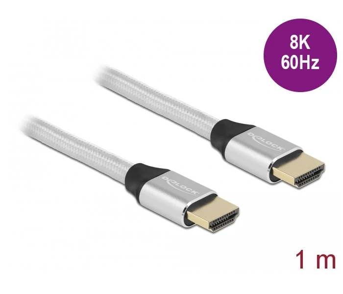 Delock Ultra nagy sebességű HDMI kábel 48 Gbps 8K 60 Hz ezüst 1 m tanúsítvánnyal