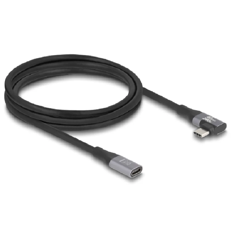 Delock USB 20 Gbps bővítőkábel, ívelt bal / jobb, USB PD 3.1 Extended Power Range 240 W 2 m